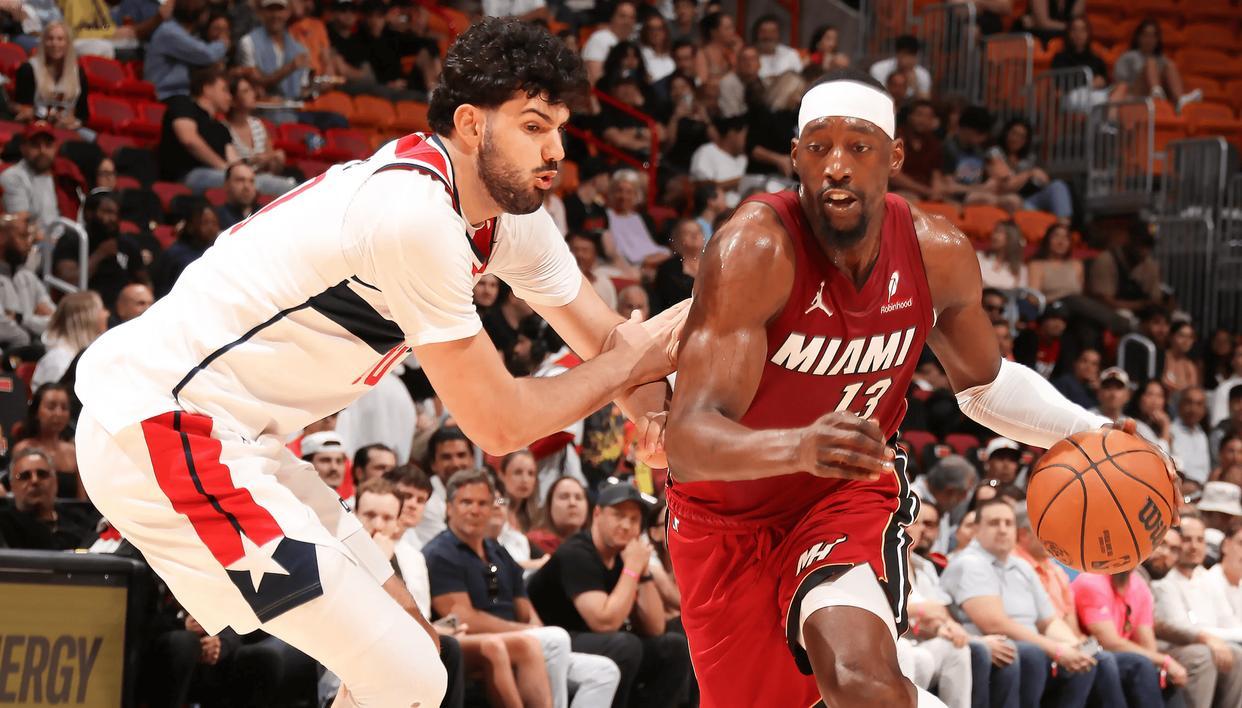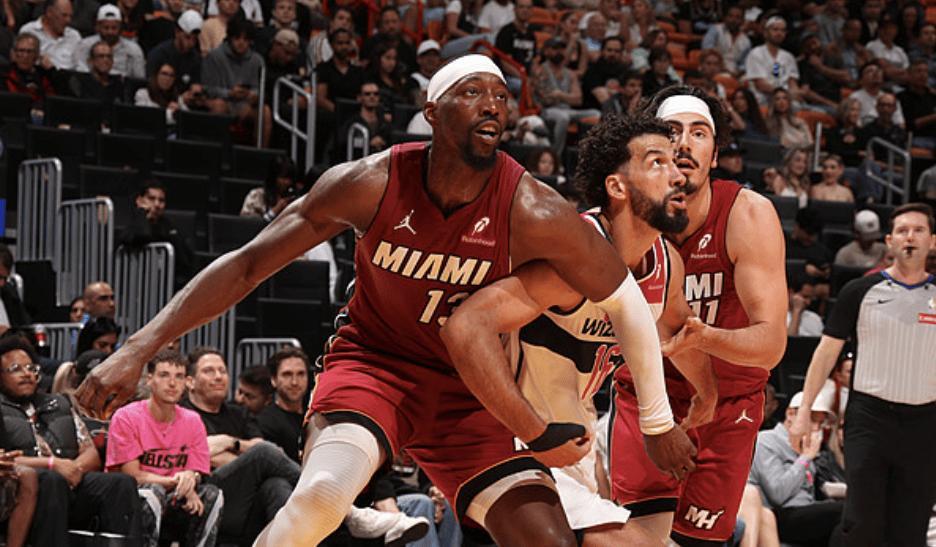 NBA常规赛,热火坐镇主场迎击奇才队。本来是一场平平无奇,没什么关注点的比赛,但是热火球星阿德巴约,这场比赛神奇轰出83分9篮板,打破了科比的后NBA时代81分单场最高分纪录,有脸离谱。先来简单介绍两支队伍,本场比赛之前,热火36胜29负排名东部第7,自巴特勒离开之后,他们仍然具备季后赛的水平,嘴哥威金斯,阿德巴约,希罗三人都入选过全明星,而本赛季从快船交易得到的鲍威尔,来到热火后也焕发新生,成为了球队的主力得分点,常规赛到现在鲍威尔场均能得到22.5分3.6篮板2.6助攻。